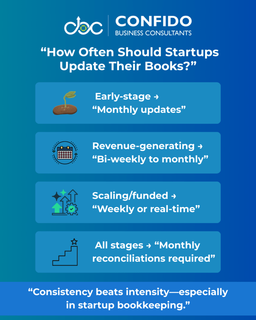 How Often Startups Should Update Their BooksOne of the most common questions founders ask is: “How often do I really need to update my books?” The short answer: more often than you think—but not obsessively. The right update frequency depends on your startup’s stage, transaction volume, and goals. What matters most is consistency, not perfection. Why Update Frequency MattersBookkeeping isn’t just about record-keeping—it’s about decision-making. When books are updated regularly: